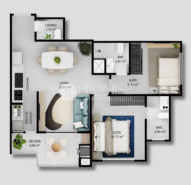 • Área privativa de aproximadamente 66,72 m²